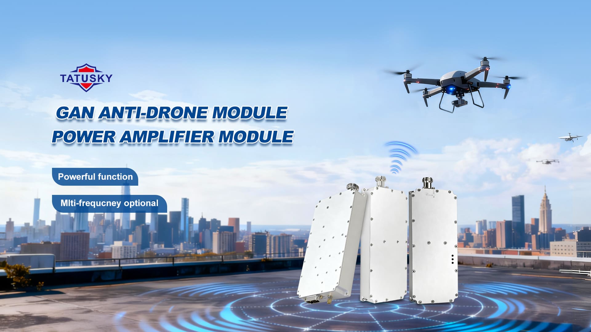 Tatusky Technology Co., Limited, is a high-tech enterprise focusing on the R&D, production and sales of communication and security products. Our main products are RF module, power amplifier, antenna, signal generator, detector and anti UAV solution.